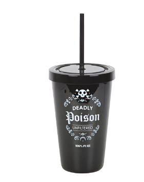 The bold white 'Deadly poison' design set against the sleek black background creates a striking contrast , turning a everyday object into a symbol of unique style.